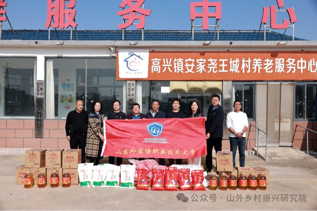 2025为弘扬中华优秀传统文化、践行高校社会责任,山东外国语职业技术大学党委副书记郑成刚带领党委组织部、工会及乡村振兴研究院工作人员,于2025年10月29日走进学校结对帮扶的岚山区高兴镇安家尧王城村,开展“重阳送暖・关爱耆老”慰问活动,山东外国语职业技术大学派驻村“第一书记”成积广和工作组专班、高兴镇党委副书记陈磊、高兴镇尧王社区党总支书记黄建昌等主要负责同志陪同活动。